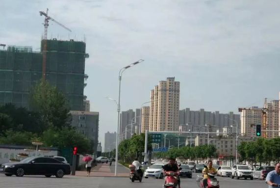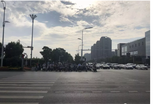 万达路口处非机动车辆等待红灯