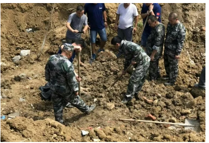 直属队将疑似区域的土方挖开后