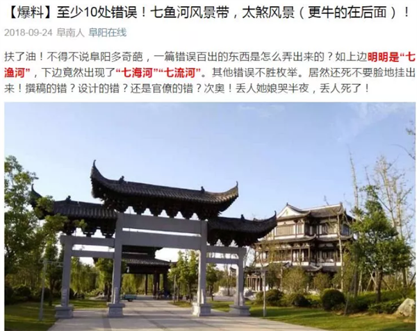 9月24日上午,有网友反映,七渔河风景带总平面图标牌出现多处错误。市旅游局值班负责人第一时间关注此事。七渔河风景带的标牌并非市旅游部门负责,但事关大美阜阳形象,市旅游局派人实地查看。第一站到西湖大道与