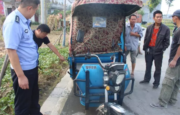 9月12日早上7时许临泉县公安局鲖城派出所接到群众报警鲖城镇某村北头发生了一起交通事故一辆三轮车落入水中警情就是命令民警第一时间赶往事故现场经了解符女士骑着电瓶三轮车送小孩去上学因为赶时间车子骑的比较